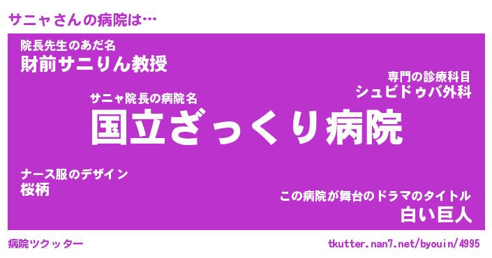 | 2回繰り返すあだ名 | 『サニサニ』『ササニニ』『ぐーぐー』 |