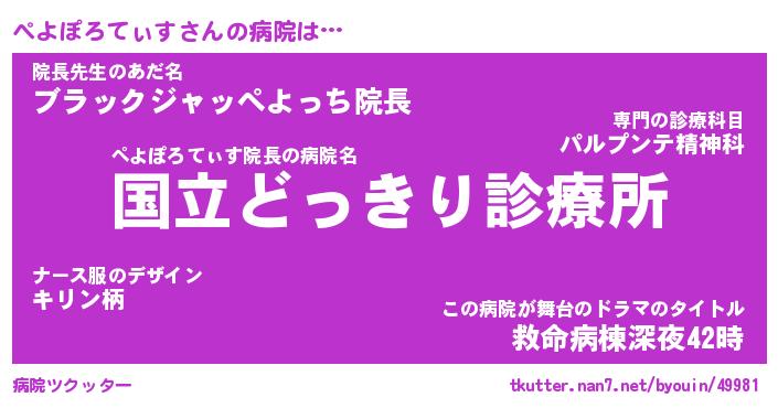 | 伝説のあだ名 | 『伝説のスナイパーぺよぽろてぃす』 |