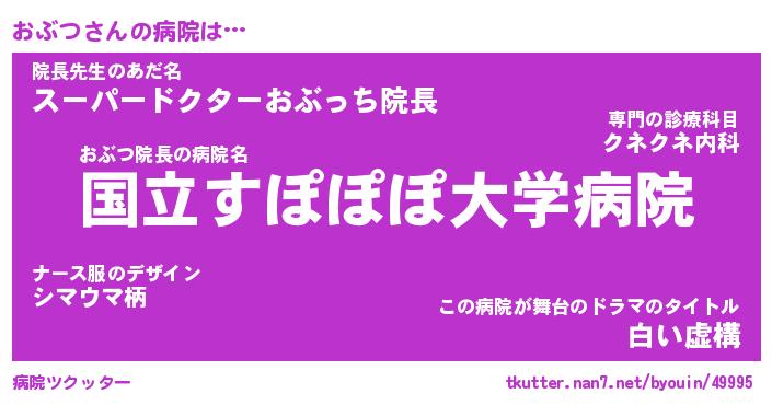 | ヒーロー風カッコイイあだ名 | 『スーパーオブツ』『ウルトラおぶつマン』 |