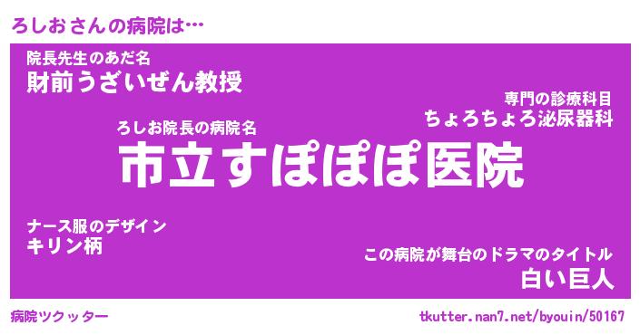 | 伝説のあだ名 | 『伝説のスナイパーろしお』 |