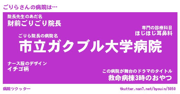| 2回繰り返すあだ名 | 『ごりごり』『ごごりり』『ぬれぬれ』 |