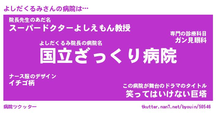 | 伝説のあだ名 | 『伝説のスナイパーよしだくるみ』 |