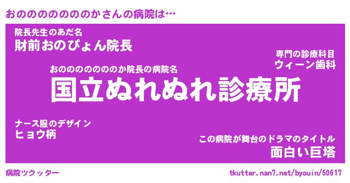 | 女子向けラノベタイトル風あだ名 | 『(仮)おのののののののかのやんごとなき事情』 |