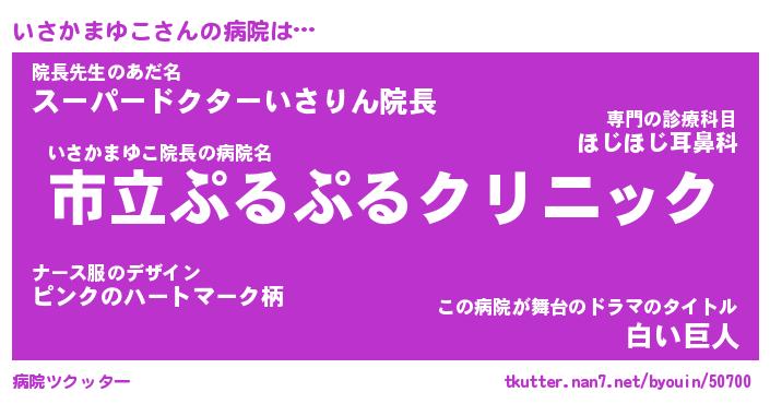 | 肩書あだ名 | 『いさかまゆこ店長』『いさかまゆこ団長』 |
