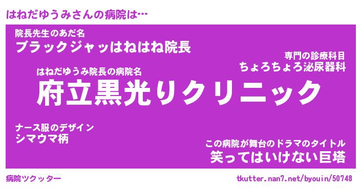 | ヘコむあだ名 | 『はねふぇ~』『豆乳』『はね太郎』 |