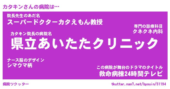 | ヒーロー風カッコイイあだ名 | 『スーパーカタキン』『天弓騎士カタ』 |