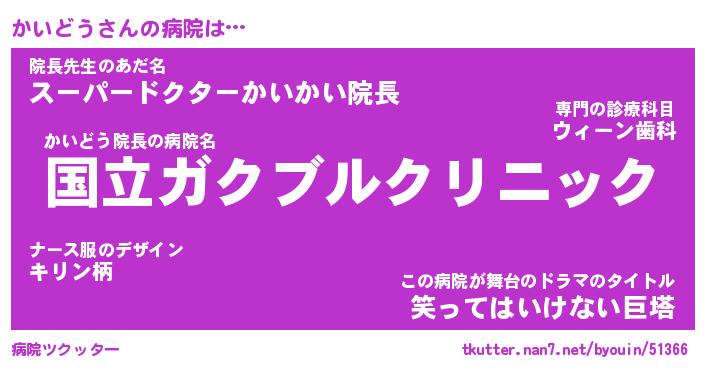 | 意味不明あだ名 | 『ペロリンかいどう』『永久保存かいどう』 |