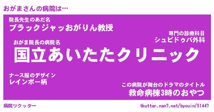 | 2回繰り返すあだ名 | 『おがおが』『おおがが』『ぬぷぬぷ』 |