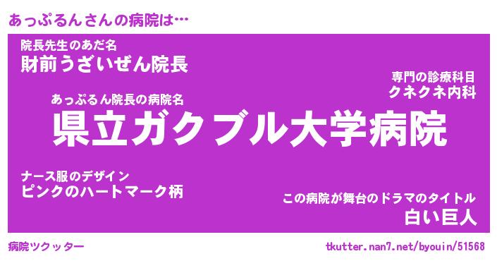 | 男性向けラノベタイトル風あだ名 | 『あっぷるんの憂鬱』 |