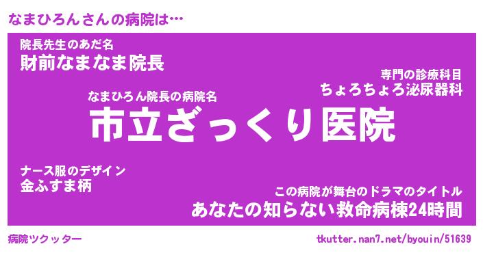 | 男性向けラノベタイトル風あだ名 | 『なまひろんの憂鬱』 |