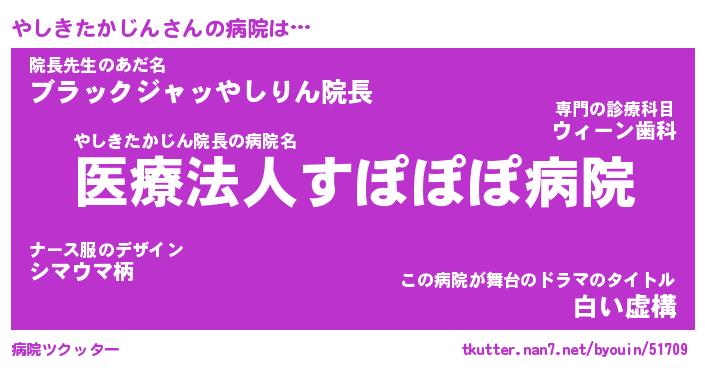 | ヒーロー風カッコイイあだ名 | 『スーパーヤシキタカジン』 |