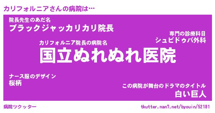| 男性向けラノベタイトル風あだ名 | 『カリフォルニアの憂鬱』 |