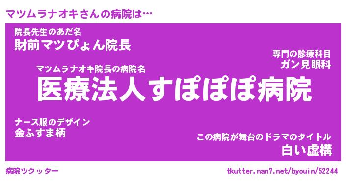 | ポケモン風あだ名 | 『マツチュウ』『マツムダネ』 |