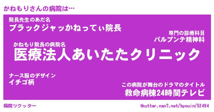 | 意味不明あだ名 | 『ペロリンかねもり』『永久保存かねもり』 |