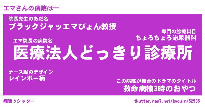 | 2回繰り返すあだ名 | 『エマエマ』『エエママ』『ぬれぬれ』 |