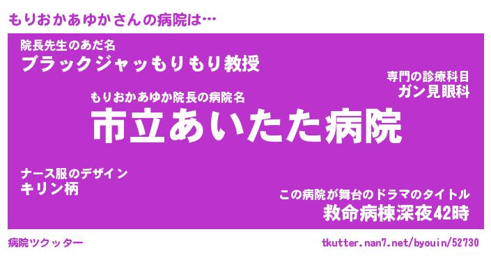 | 伝説のあだ名 | 『不死鳥のスナイパーもりおかあゆか』 |