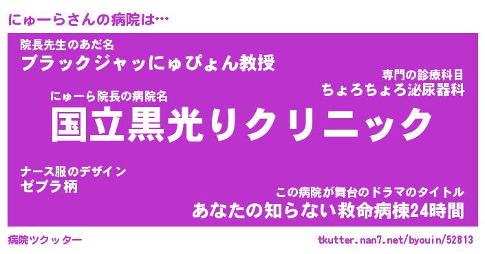 | 男性向けラノベタイトル風あだ名 | 『にゅーらの憂鬱』 |