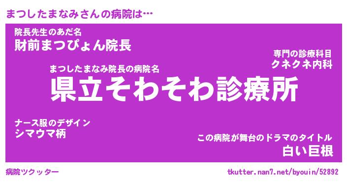 | 恥ずかしいあだ名 | 『プリティーまつしたまなみ』『まつちん』 |