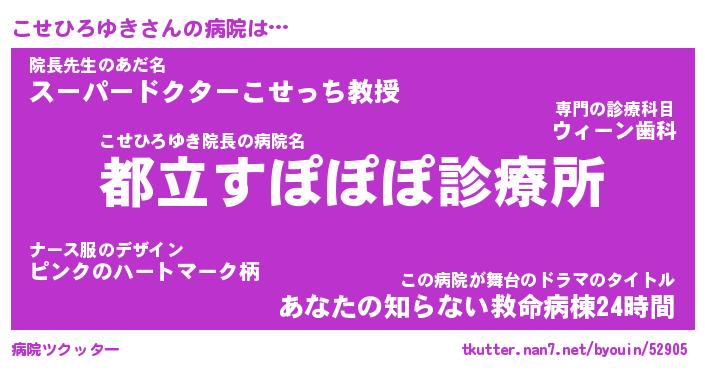 | ヒーロー風カッコイイあだ名 | 『スーパーコセヒロユキ』『天弓騎士コセ』 |