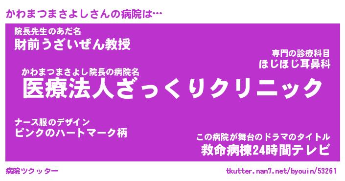 | 肩書あだ名 | 『かわまつまさよし御曹司』 |