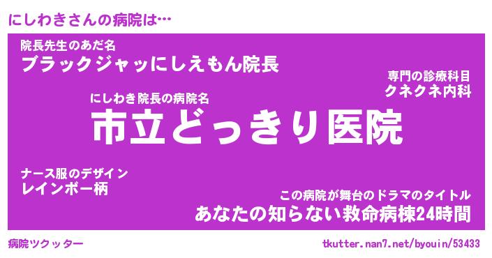 | 肩書あだ名 | 『にしわき御曹司』『にしわき大統領』 |