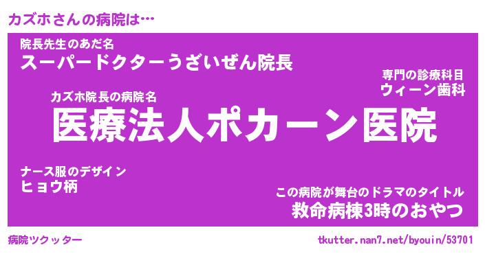 | ヘコむあだ名 | 『カズにゅー』『つくし』『カズを』 |