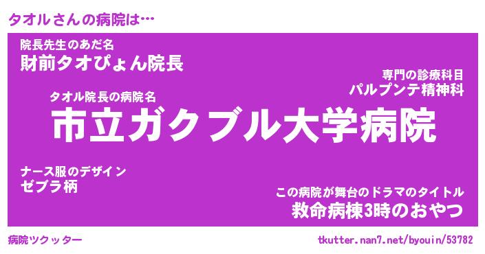| 男性向けラノベタイトル風あだ名 | 『タオルの憂鬱』 |