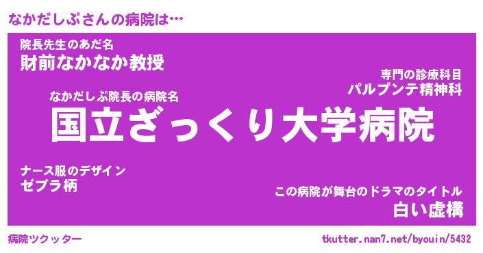 | 女子向けラノベタイトル風あだ名 | 『(仮)なかだしぷのやんごとなき事情』 |
