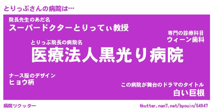 | 胡散臭い通販商品みたいなあだ名 | 『億万長者になれるブレスレット…その名も「とりっぷ」』 |