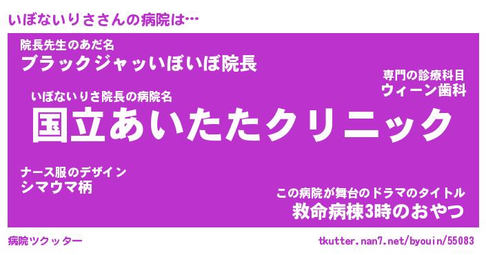 | 伝説のあだ名 | 『伝説のスナイパーいぼないりさ』 |