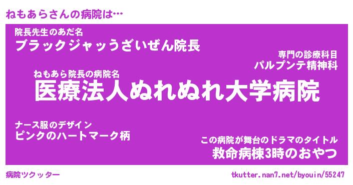 | 意味不明あだ名 | 『ペロリンねもあら』『永久保存ねもあら』 |