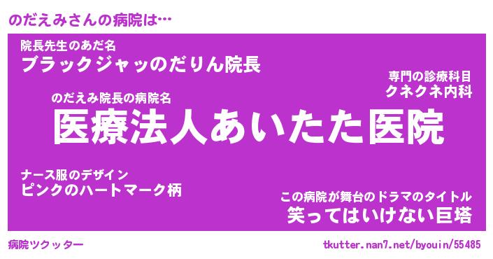 | 2回繰り返すあだ名 | 『のだのだ』『ののだだ』『ねばねば』 |