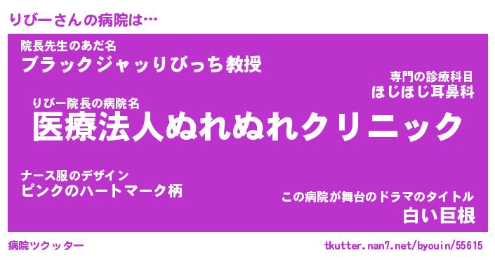 | ヘコむあだ名 | 『りびもー』『なまこ酢』『りびお』 |