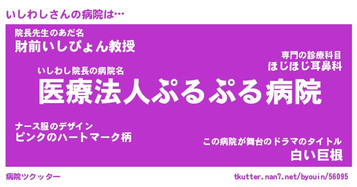 | 意味不明あだ名 | 『ペロリンいしわし』『永久保存いしわし』 |