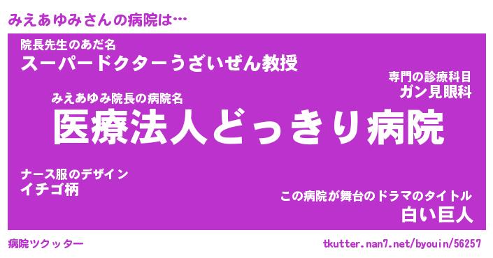| 肩書あだ名 | 『みえあゆみ御曹司』『みえあゆみ大統領』 |