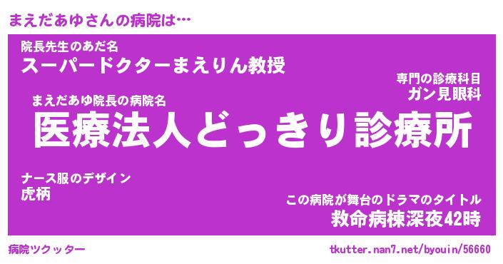 | ヒーロー風カッコイイあだ名 | 『スーパーマエダアユ』『幻影騎士マエ』 |