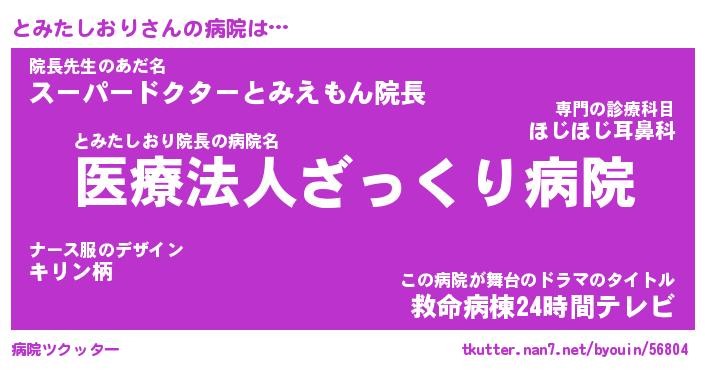 | 恥ずかしいあだ名 | 『プリティーとみたしおり』『とみっちょ』 |