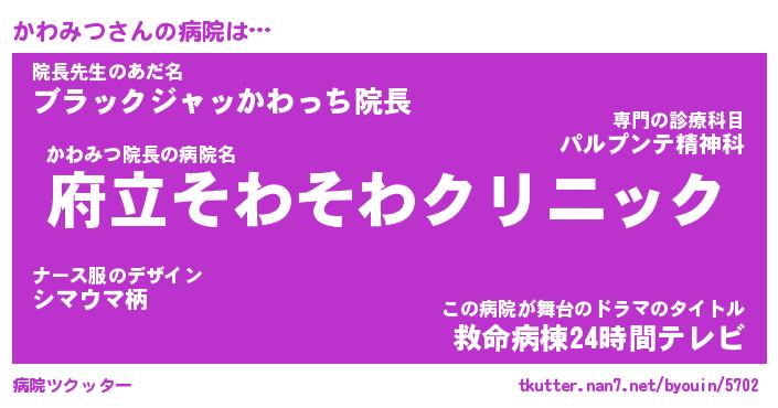 | 男性向けラノベタイトル風あだ名 | 『かわみつの憂鬱』 |