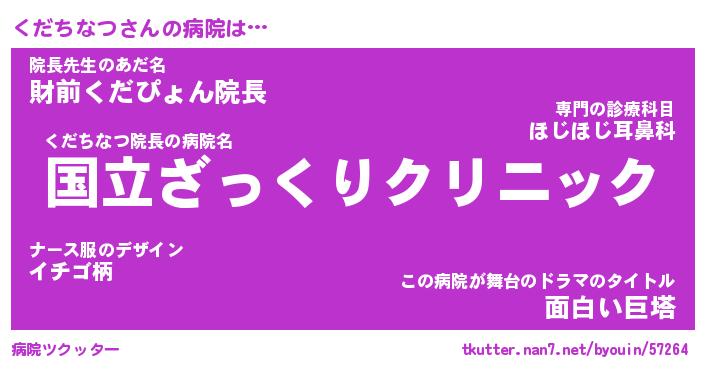 | 伝説のあだ名 | 『伝説のスナイパーくだちなつ』 |
