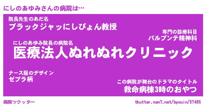 | ヒーロー風カッコイイあだ名 | 『スーパーニシノアユミ』『幻影騎士ニシ』 |