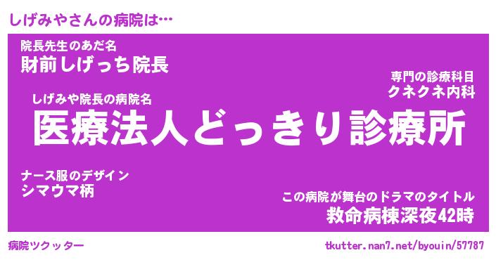 | 意味不明あだ名 | 『ペロリンしげみや』『永久保存しげみや』 |