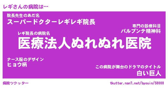 | ヘコむあだ名 | 『レギもー』『つくし』『レギを』 |