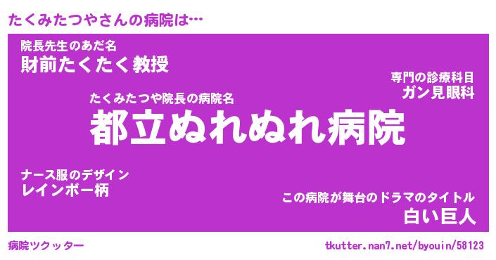 | 伝説のあだ名 | 『不死鳥のスナイパーたくみたつや』 |