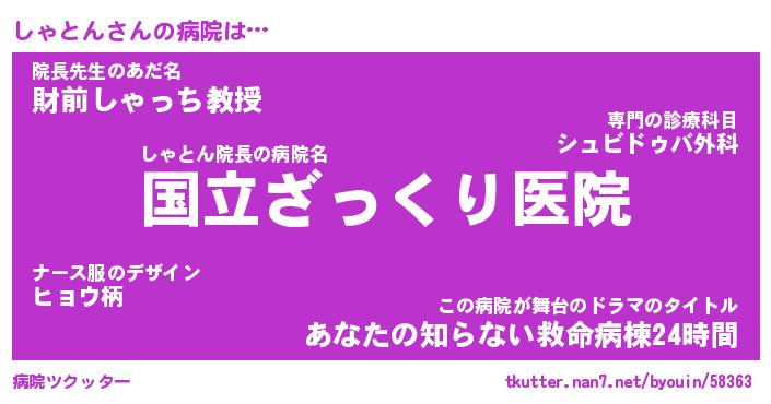 | 伝説のあだ名 | 『伝説のスナイパーしゃとん』 |
