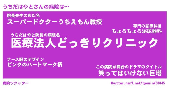 | 伝説のあだ名 | 『封印されしスナイパーうちだはやと』 |