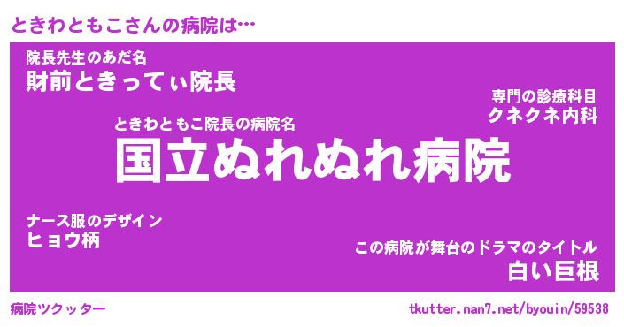 | ヘコむあだ名 | 『ときもー』『つくし』『ときを』 |