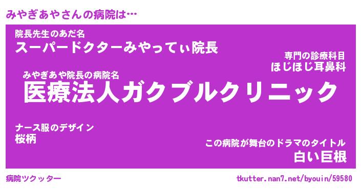 | ファンタジー風あだ名 | 『ミヤフェル』『エターナルミヤギアヤー』 |