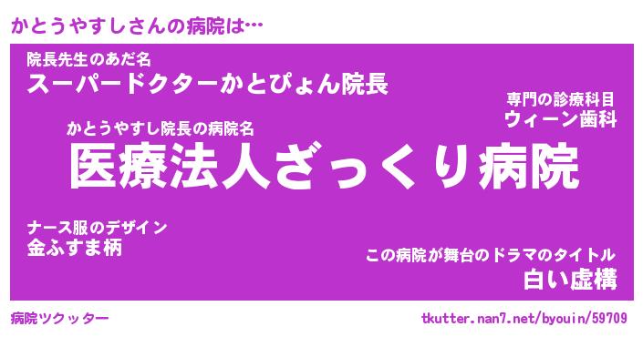 | 肩書あだ名 | 『かとうやすし御曹司』 |