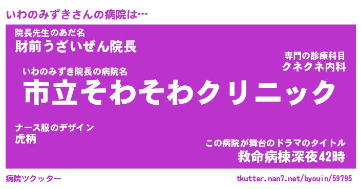 | ヘコむあだ名 | 『いわふぇ~』『酢こんぶ』『いわを』 |