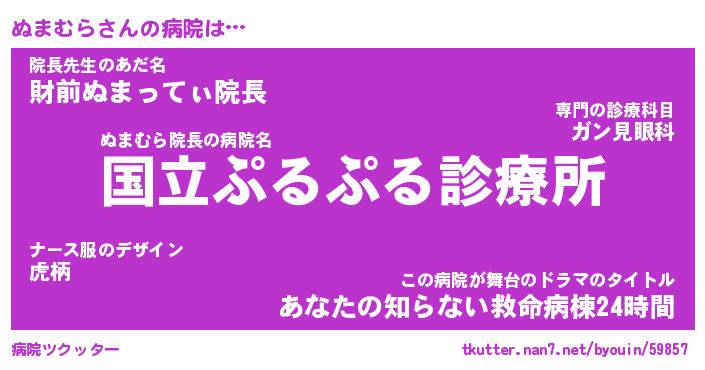 | 男性向けラノベタイトル風あだ名 | 『ぬまむらの憂鬱』 |